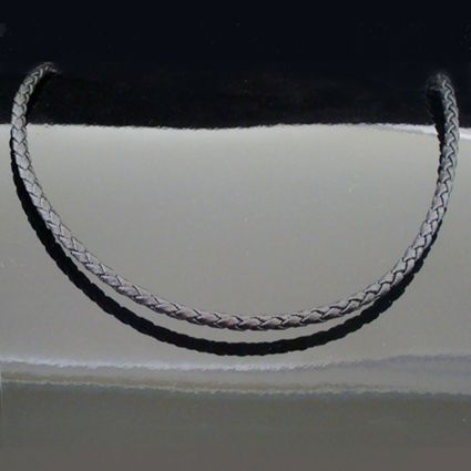 Cordão de Couro com fecho em Prata 950. Comprimento: 46.00 cm