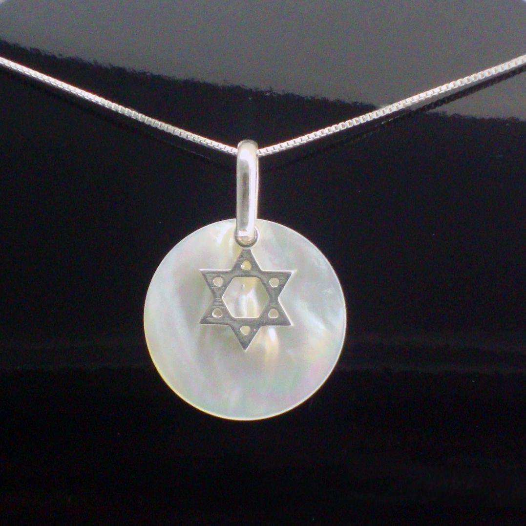 Peça confeccionada em Prata 950 com madrepérola. Estrela de David ou escudo de David é um símbolo real, um selo de realeza representativo do reinado de David. Quando as nações pagãs iam à guerra, muitas vezes pintavam figuras para inspirar medo aos adversários nos escudos dos seus prórprios soldados. No entanto, em Israel, o símbolo é o escudo de David. Obs: Corrente não inclusa. Largura: 2.50 cm Comprimento: 4.80 cm Peso: 4 g