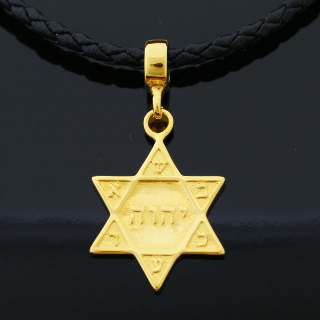 Peça confeccionada em Prata 950 com banho de ouro. O Pantáculo Selo de Salomão representa a presença Divina, o próprio símbolo ajuda na meditação e concentração. Preserva a saúde, a tranqüilidade do consciente e a paz do subconsciente. É um pantáculo completo. (No mantra do hexagrama está: "A essência Divina me dá clareza e justiça, o Onipotente sorriso de D-us impera."). Obs: Cordão de couro não incluso. Largura: 2.10 cm Comprimento: 4.80 cm Peso: 5 g